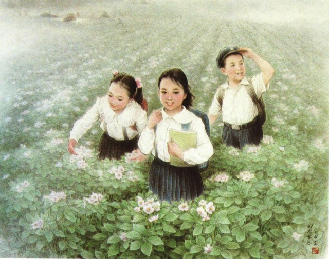 В качестве иллюстрации: «Детсоюзовцы посреди моря картофельных цветов в Техондане». Автор неизвестен.