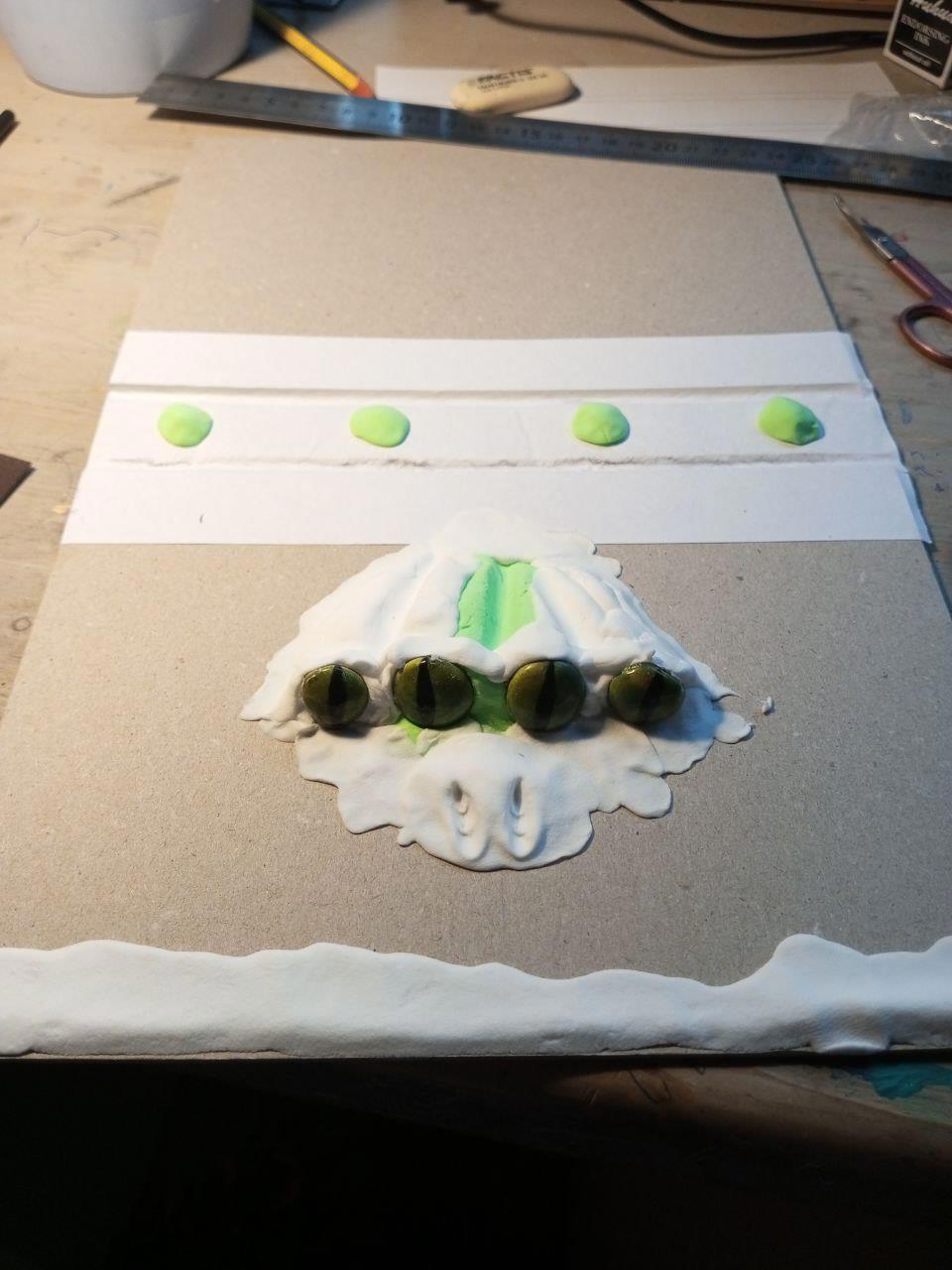 Зубы и глаза из геля для моделирования ногтей, шкурка из искусственного меха, рельеф из воздушного пластилина. И да. Я решила, что у неё должны быть лапки!