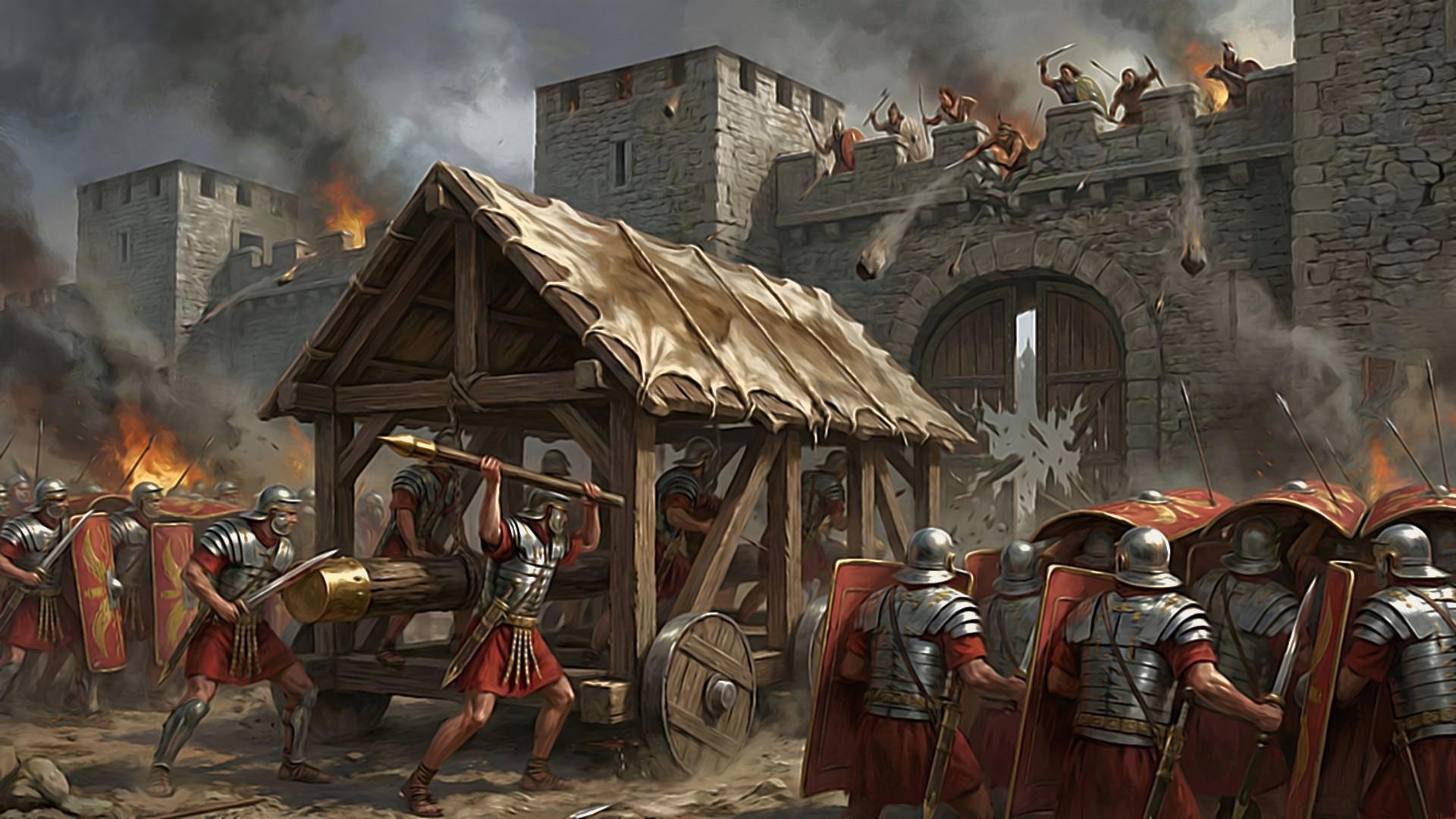 Штурм Красной Скалы. Первый легион Минервы разбивает ворота внешней стены.