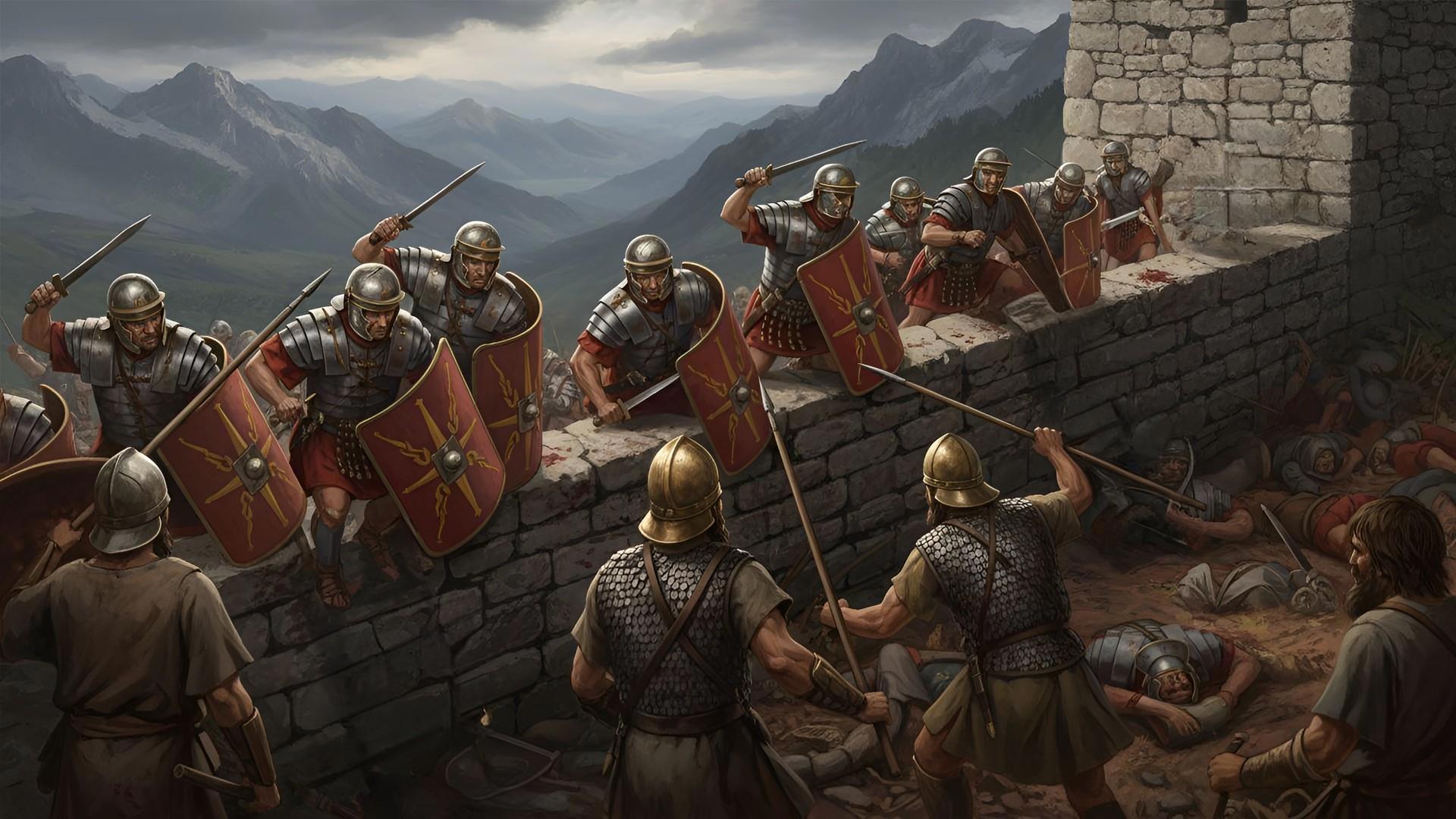 Штурм Красной Скалы. Легионеры лезут на внутреннюю стену.