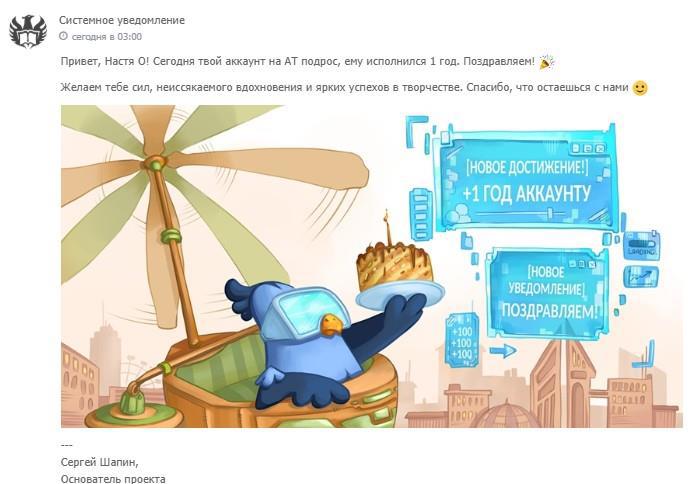 Автор: Настя ОВчера от АТ пришло системное уведомление о том, что я, оказывается, уже год как зарегистрирована на сайте)