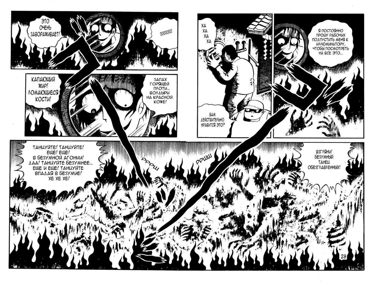 Вероятно не всем зайдёт данная работа, ибо хоррор это крайне субъективный жанр искусства: то, что пугает одного - усыпляет другого. Одни люди находят "Седьмые врата ада" Лючио Фульчи до мурашек жутким фильмом, а иные - лишь скоплением мерзостей, пусть и прикольно снятых. Так же и с этой мангой. Я после её прочтения несколько минут сидел в полной тишине с глазами на выкате, чего с вами, возможно, не произойдёт. Однако я бы посоветовал дать этой работе шанс, а так же попробовать увидеть в ней нечто большее чем просто "скопление мерзостей".