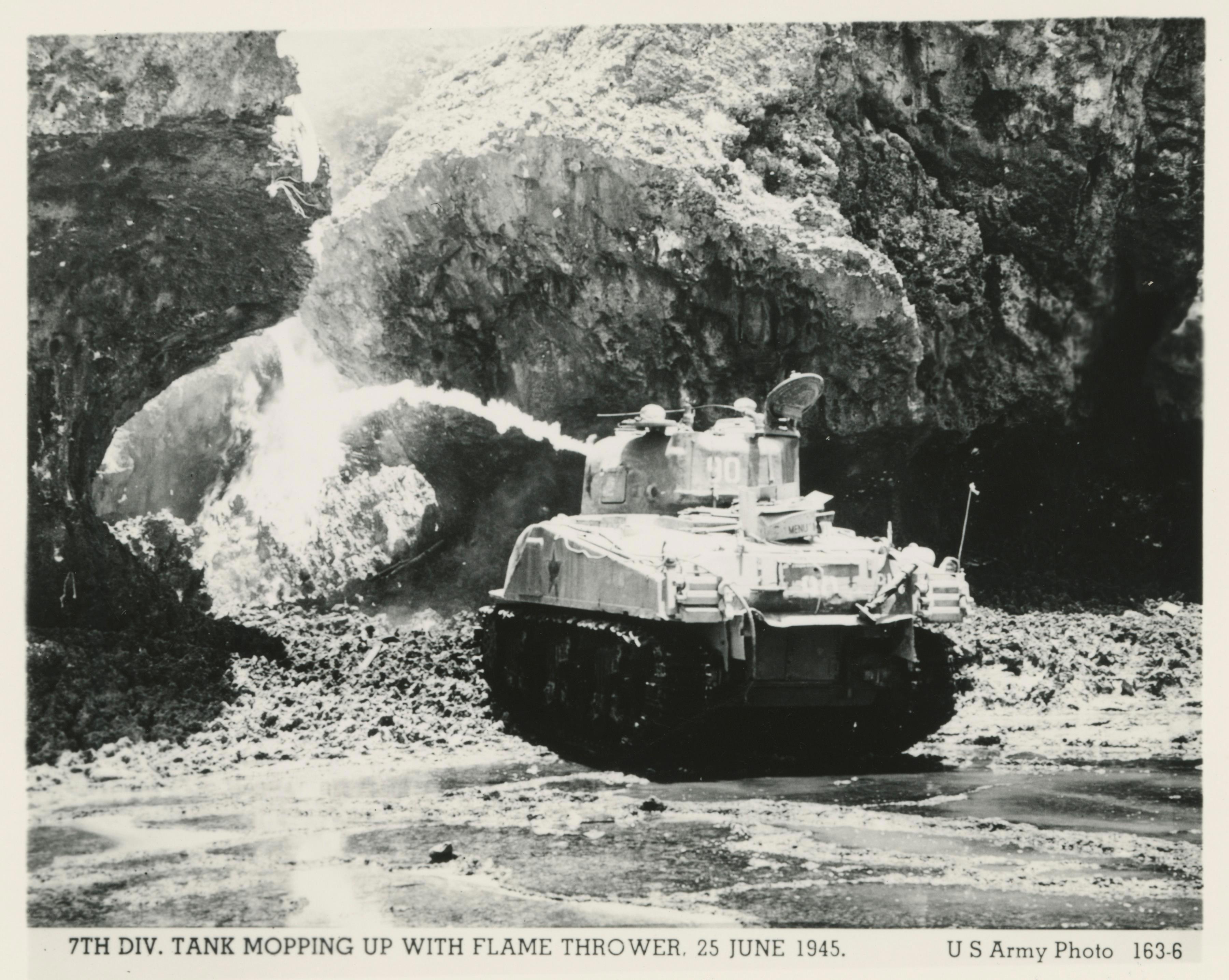И если производителя лучших в мире белорусских креветок простой американец на карте может сходу и не найти, то вот про войну на Тихом океане вообще и Окинаву частности на их американском написано вагон книг и статей, снята куча фильмов и так далее. Так что даже простой американский блогер будет знать: морпех с Окинавы может страдать «от запаха напалма по утрам» - там один только «13-й батальон огнеметных танков, поддерживавший 13-17 июня войска 7-й пехотной дивизии, израсходовал 139 860 литров горючей смеси»