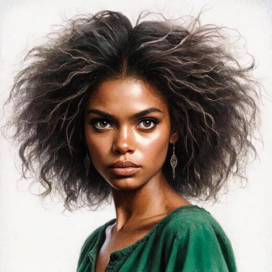 Сначала я полдня мучился с лицом девушки, у которой афрокудри. Оно получалось то слишком молодое, то слишком старое, то слишком некрасивое, то слишком мягкое, слишком современное, слишком ещё какое-нибудь.