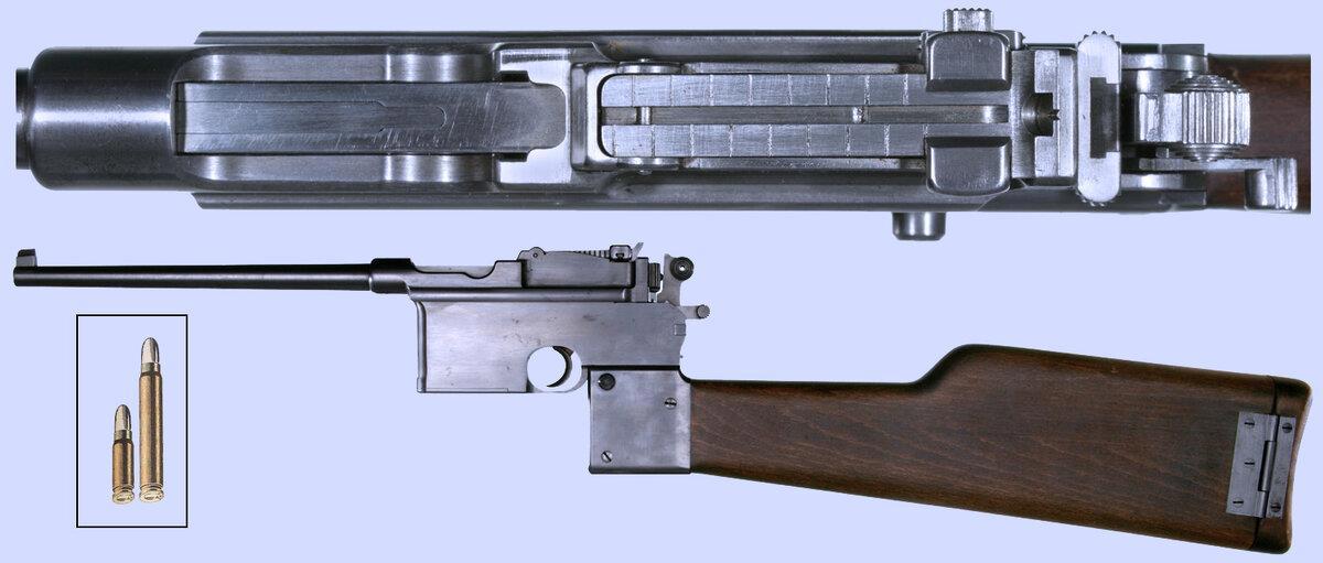 Напомню, что в самом конце 19 века Маузер делал на базе своего пистолета с-96 лёгкий карабин под мощный по тем временам патрон 7.63*25.