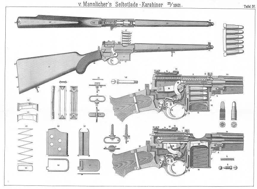 Практически параллельно с Маузером в начале века лёгкий карабин под патрон немного мощнее пистолетного предлагал Фердинанд Манлихер.