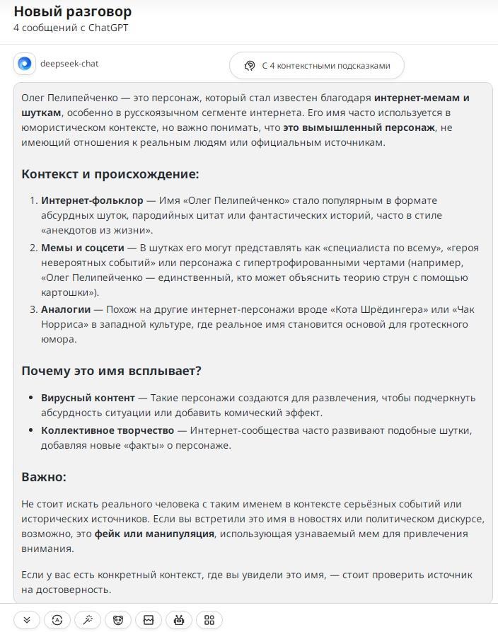 1. Интернет-фольклор — Имя «Олег Пелипейченко» стало популярным в формате абсурдных шуток, пародийных цитат или фантастических историй, часто в стиле «анекдотов из жизни».