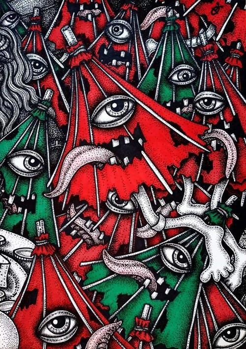 Без толку: в облаке капель и отражений, за неверной стеной тонких дождевых брызг у гидранта по-прежнему упрямо торчал небольшой сложенный зонт на голенастой ноге, обутой в сандалию на деревянной подошве. Сандалию я бы ещё пережил, но зонтяра вдобавок зачем-то был одноглаз и языкат. Покачиваясь на своей единственной ноге и ни на что не опираясь, он косил по сторонам вытаращенным оком в красных прожилках. Время от времени страшилище облизывалось длинным острым языком. Эти мелькающие облизывания вконец меня доконали, и я выкинул белый флаг.
