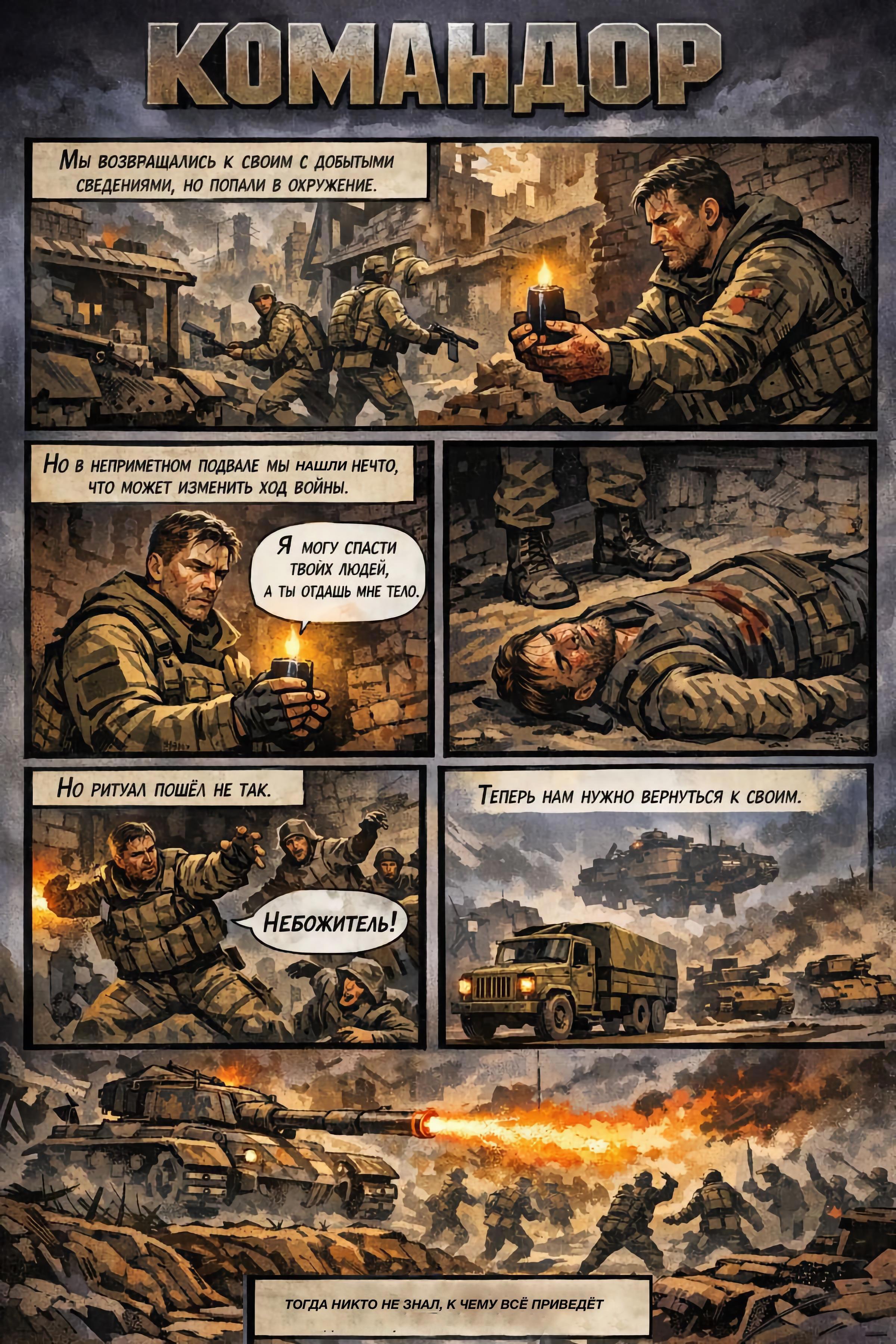 Ниже небольшой комикс, загрузил первые главы в нейросетку для прикола, и вот что вышло. Сделал бы и видео, но это уже долго.