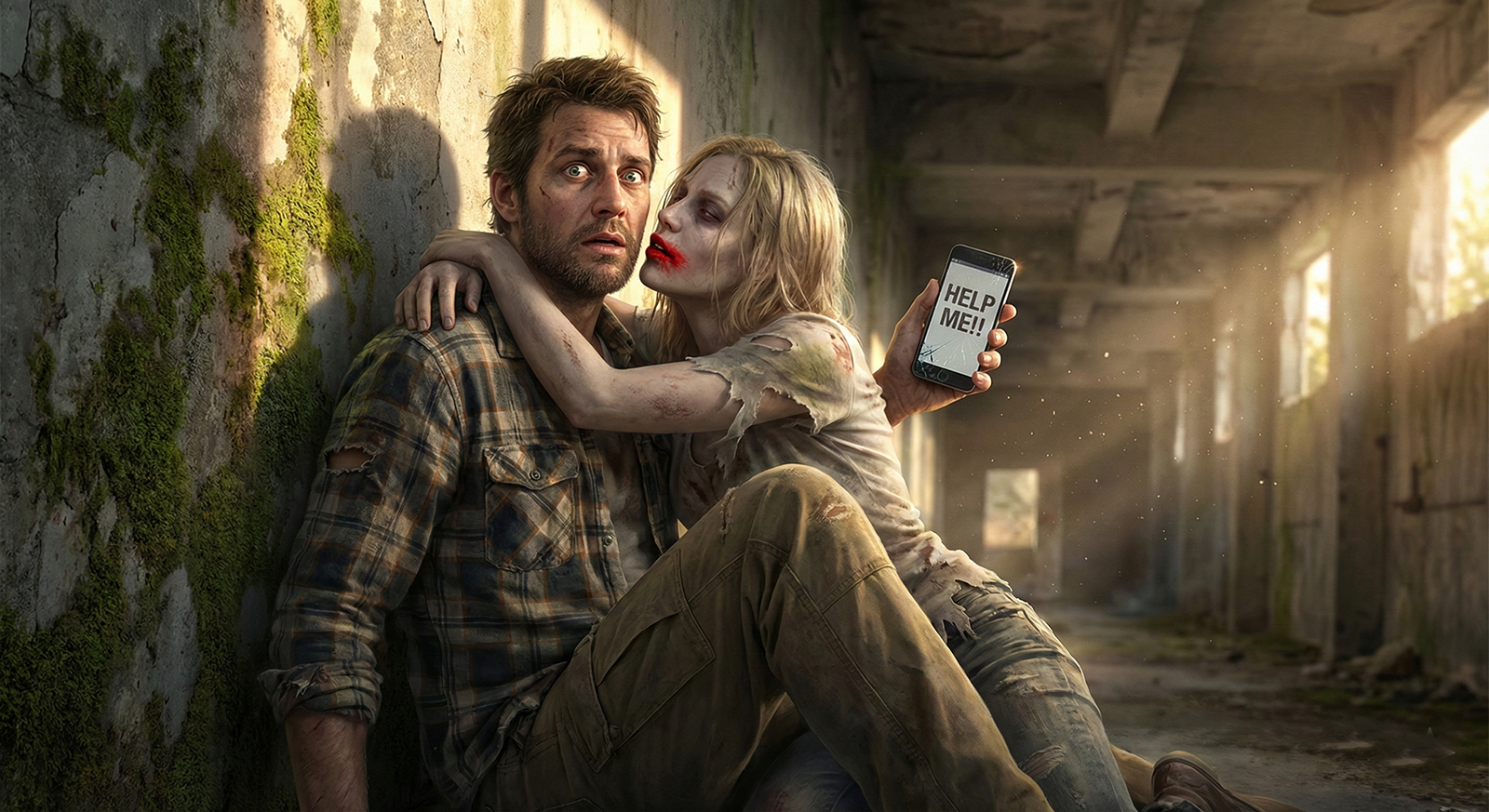 2.Эффект «Зловещей долины»: Когда существо выглядит почти как человек (как та дама с картинки), но двигается со скоростью сломанного робота и пытается «дружелюбно» откусить вам лицо.