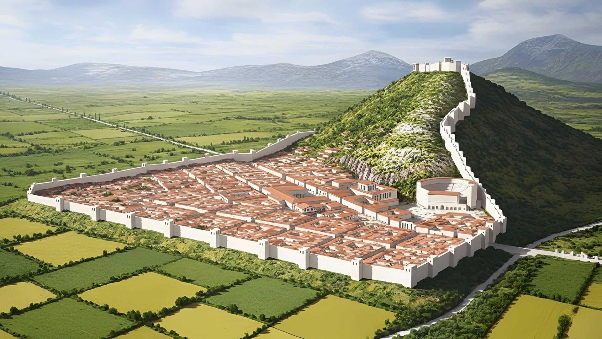 Расположение улиц далеких от центра нарисовано условно. Не считая двух извилистых улиц к северо-западу от храма Исиды. Раскопан более-менее детально центр города.