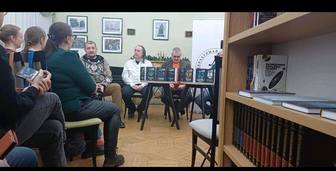 2. Презентовали работы Литмастерской Лукьяненко этого года, в числе изданных книг — мой роман «Профессор Амлетссон».