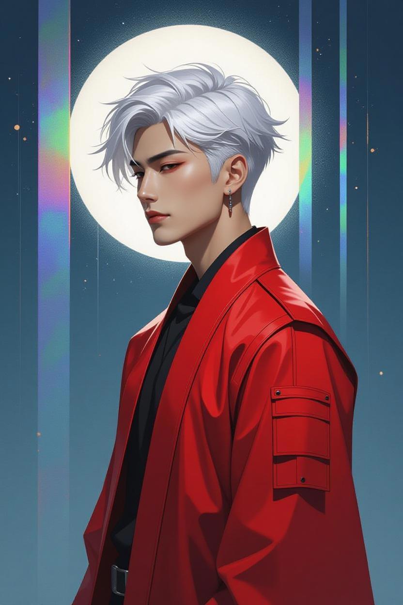 Альбинос: волосы платиново-белые, но он ненавидит их и постоянно пытается красить в чёрный (краска смывается за неделю). Кожа мраморно-белая, от солнца покрывается волдырями — поэтому всегда укутан в ткани с ног до головы. Глаза кроваво-красные, обрамлённые белыми ресницам.