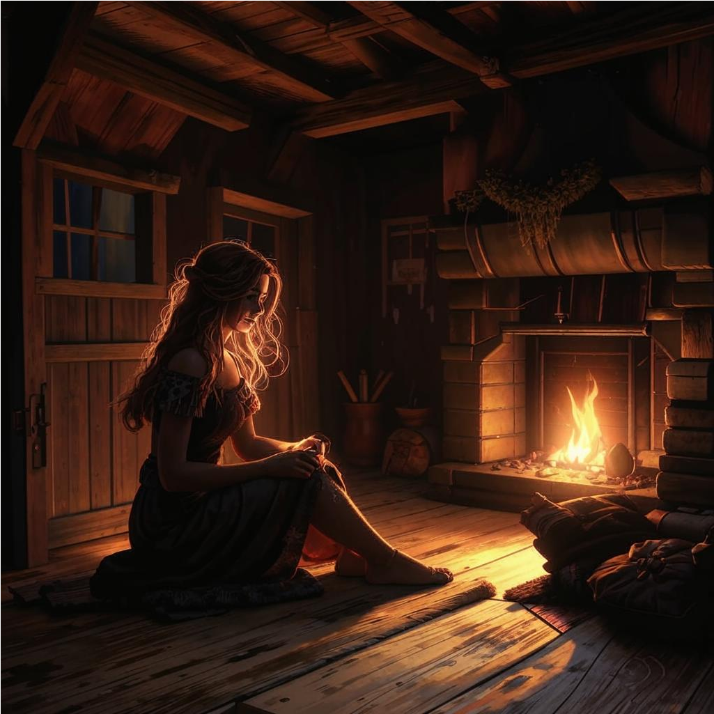 Видя шанс вырваться наружу, девочка бросилась к окну, быстро отперев ставни, она легко перепрыгнула через подоконник и приземлилась на траву. После чего она захлопнула ставни, подперев их деревянным брусом, и резко развернувшись побежала в сторону деревни.
