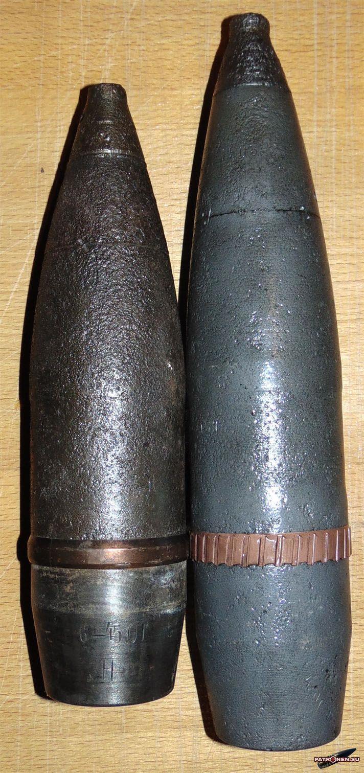 Вес снаряда 6,5 кг. ВВ 119 грамм. Начальная скорость (ствол длиной 42 калибра) 655 м/с.