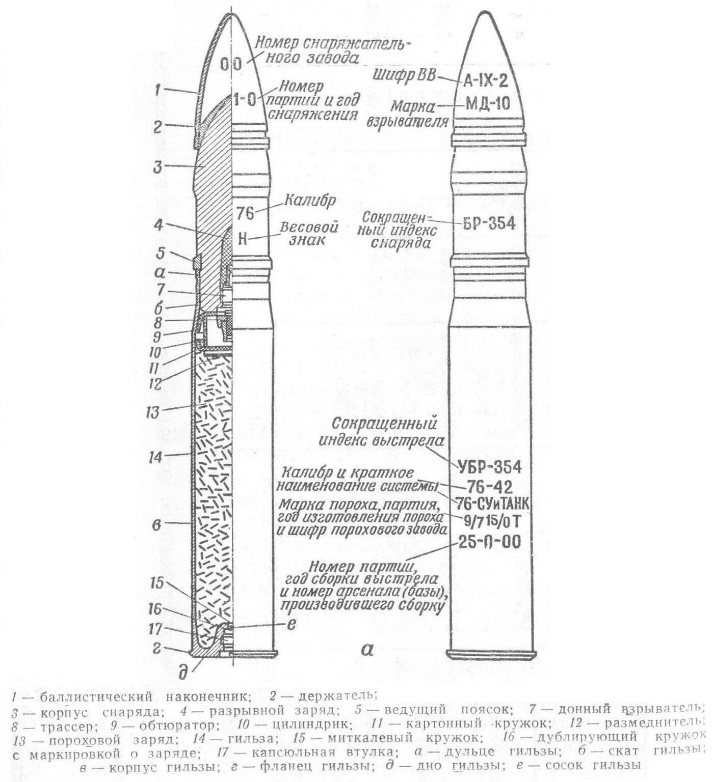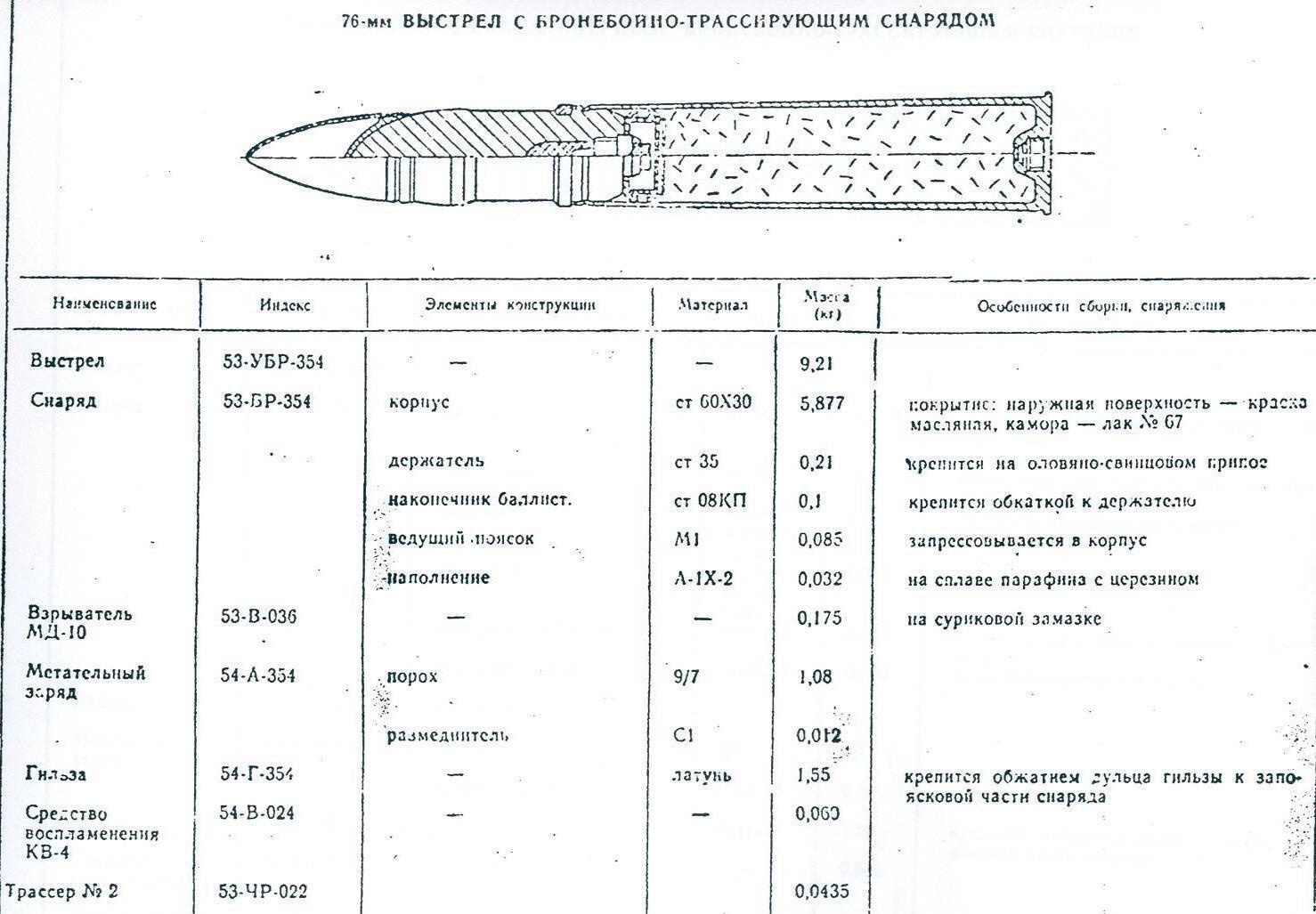 76,2-мм выстрелы 53-УБП-353А и 53-УБП-354А с бронепрожигающим снарядом сталистого чугуна 53-БП-353А
