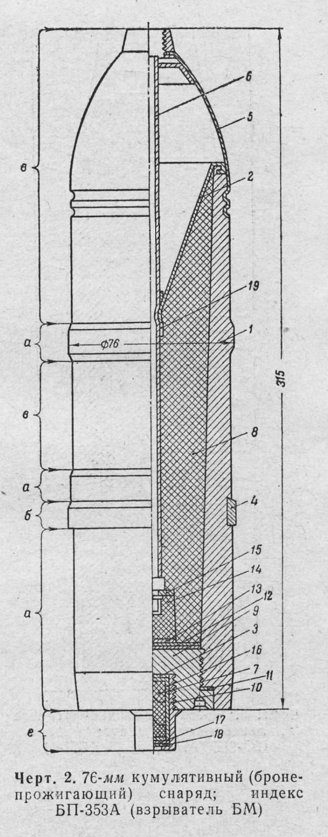 76,2-мм выстрелы 53-УБП-353М и 53-УБП-354М с бронепрожигающим (кумулятивным) стальным снарядом с трассером 53-БП-350М