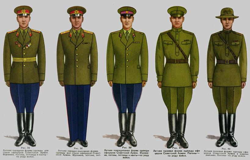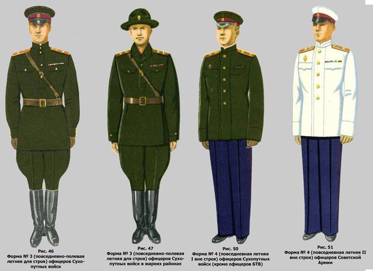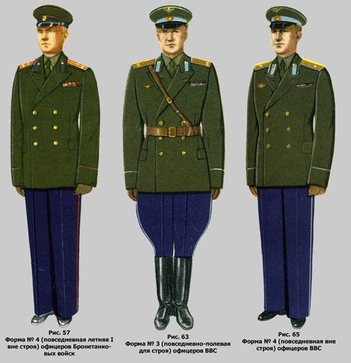 Форма одежды офицеров Советской армии. Рисунок из приказа МО СССР № 70 от 29.03. 1958 г.