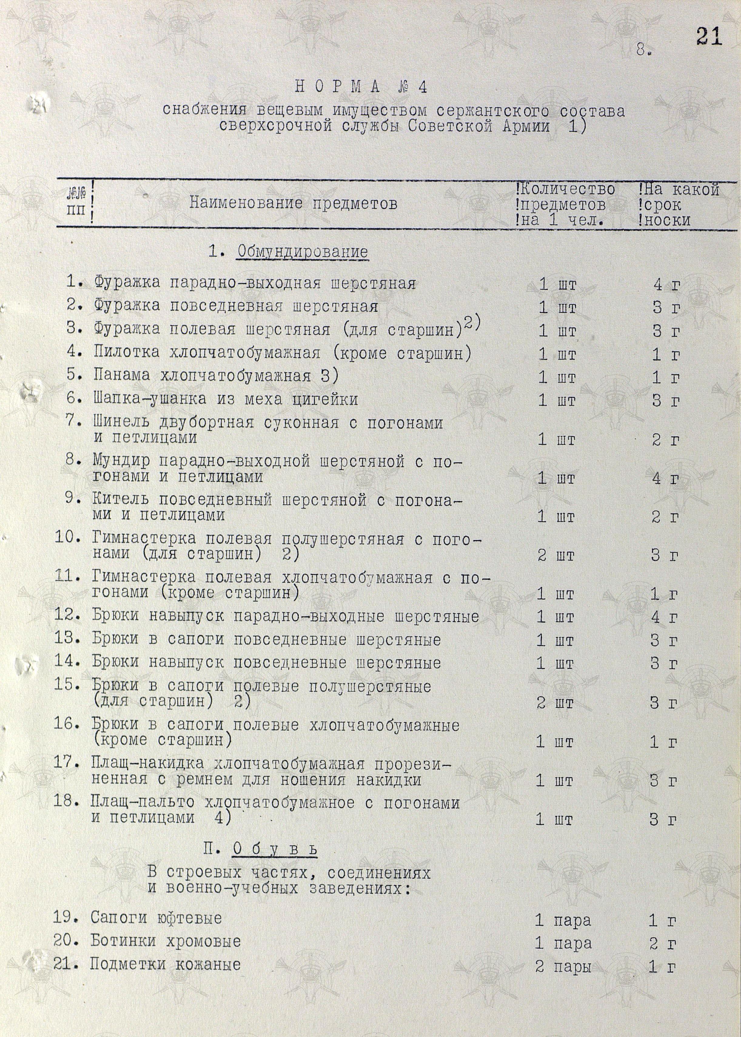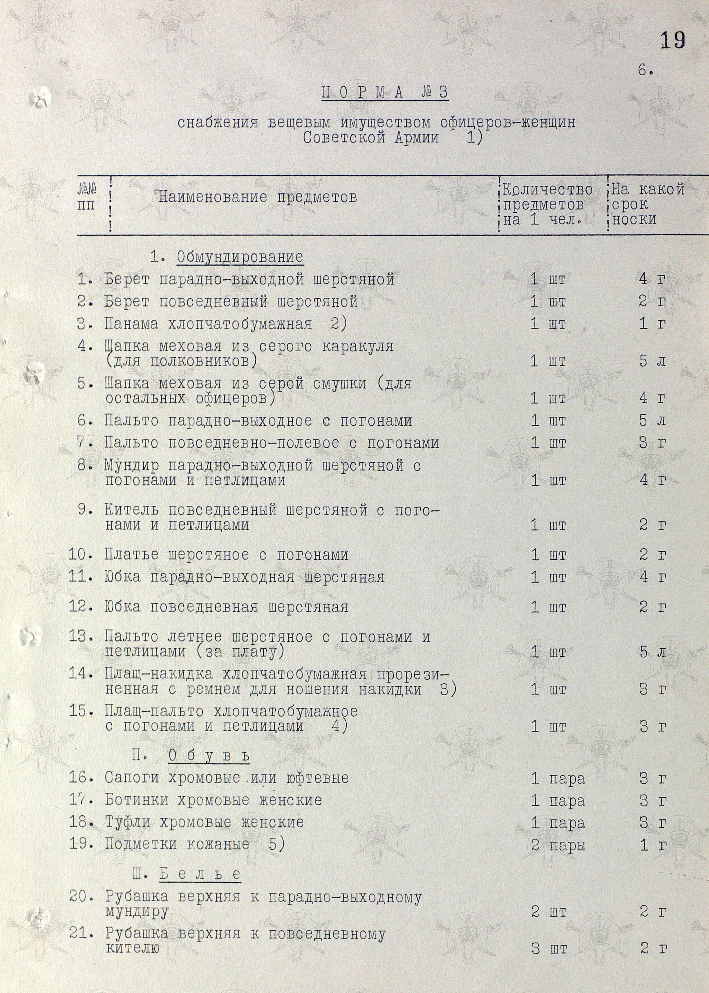 Следующие попытки улучшения снабжения вещевым имуществом офицеров и генералов Советской Армии были предприняты в 1950-х годах.