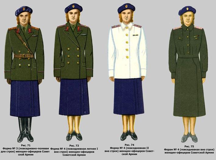 Форма одежды женщин - офицеров. Рисунок из приказа МО СССР от 30.06. 1955 г. № 105