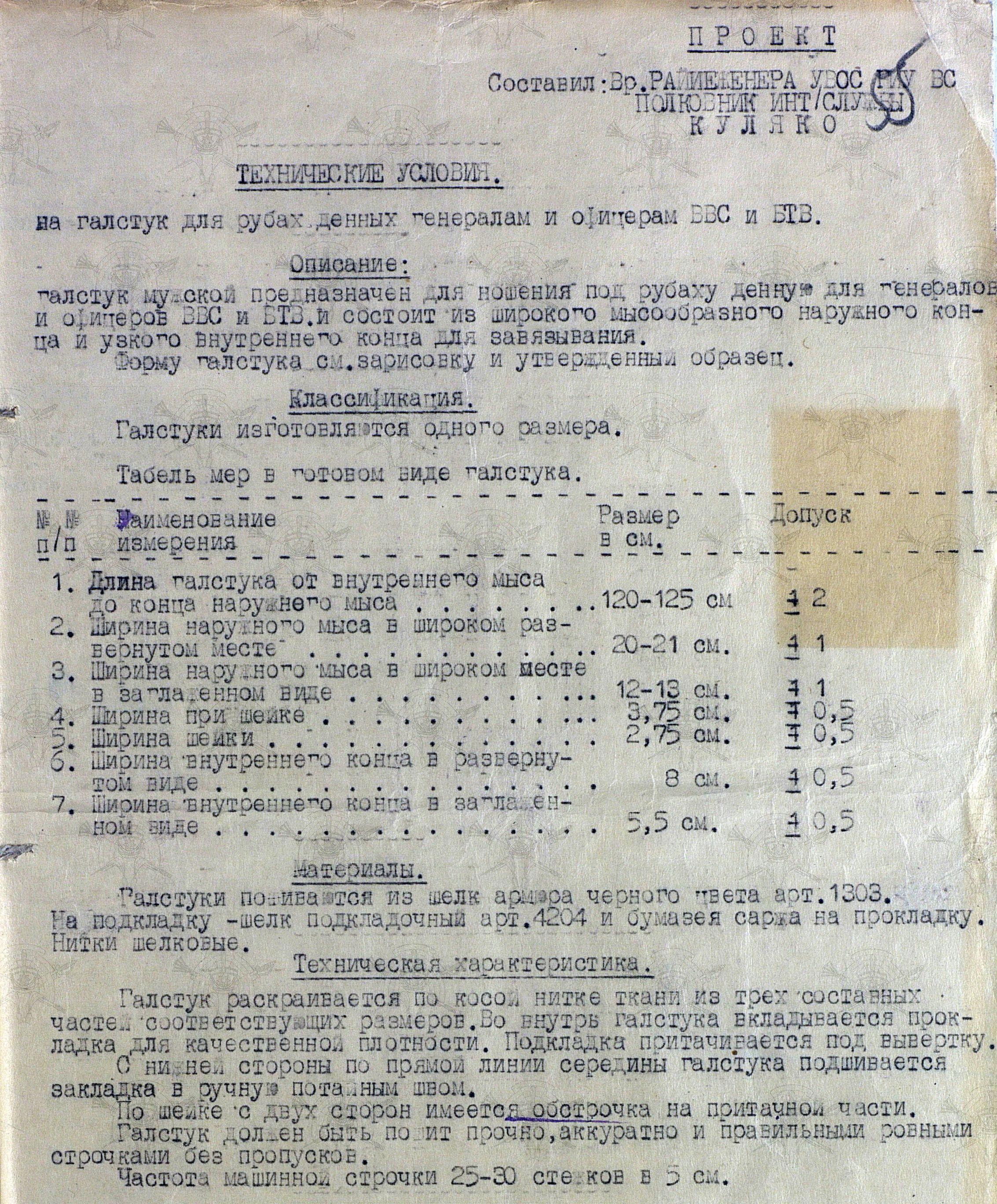 И если технических условий на рубашку найти не удалось, то проект ТУ на галстук – есть. Фрагмент из них можно увидеть ниже.