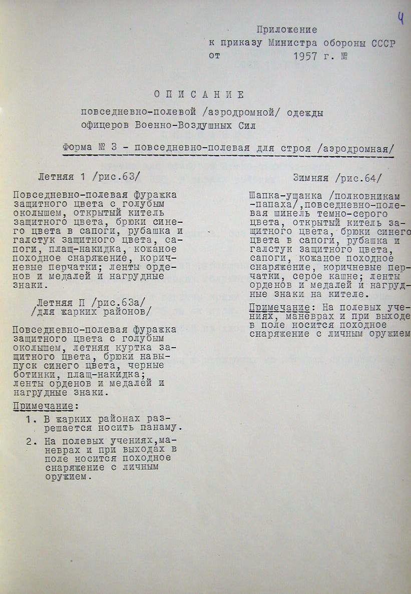 Форма одежды офицеров ВВС и БТВ. Рисунки из приказа МО СССР от 30.06. 1955 г. № 105