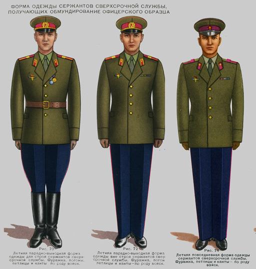 Форма одежды сержантов сверхсрочной службы, получающих офицерскую форму Советской армии. Рисунок из приказа МО СССР № 70 от 29.03. 1958 г.