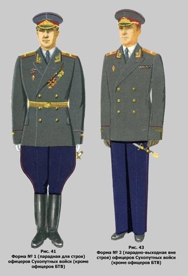 Форма одежды офицеров Сухопутных войск. Рисунки из приказа МО СССР от 30.06. 1955 г. № 105
