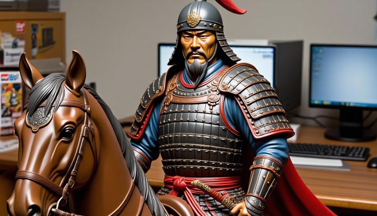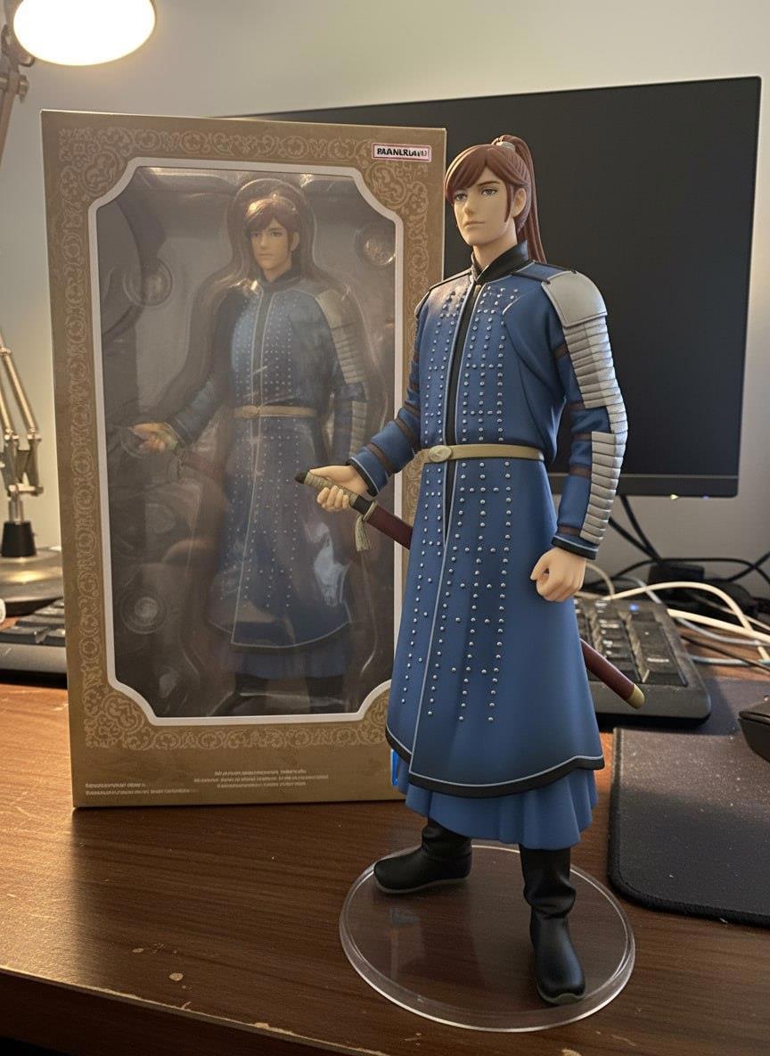 А это мой персонаж, которого в дораме обрядили не пойми во что. Правда, нейросеть нарисовала его левшой, но это ее частый грех :)