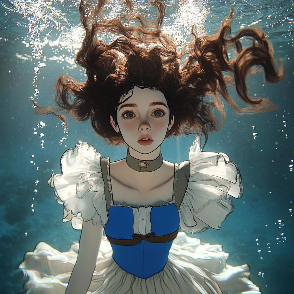 Облогу для Днища я делал сначала в комиксовом стиле, но там все настолько плохо, что я даже показывать отказываюсь, хоть юбка и вышла дивной. Вот тогда я принял страшное, на тот момент, решение о полной смене стилистики рисунка. Закинув скелет Алисы в Миджорни за бесплатно, я посмотрел, что же такого мне предложит шайтан машина, из кучи пугающего нечто в итоге выбрал это: