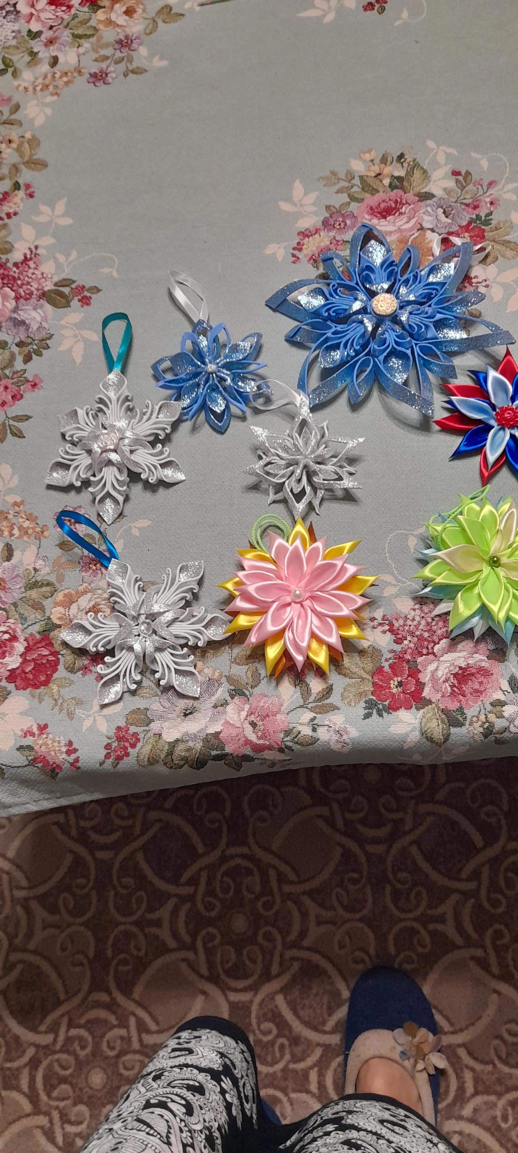 Муж откровенно ржёт, говорит скоро елку из-под этих красивостей видно не будет. Но у нас с сыном еще две ватные игрушки будут, и у меня три шарика пенопластовых лежат их тоже облагородить нужно. Так что ещё немного и я остановлюсь.