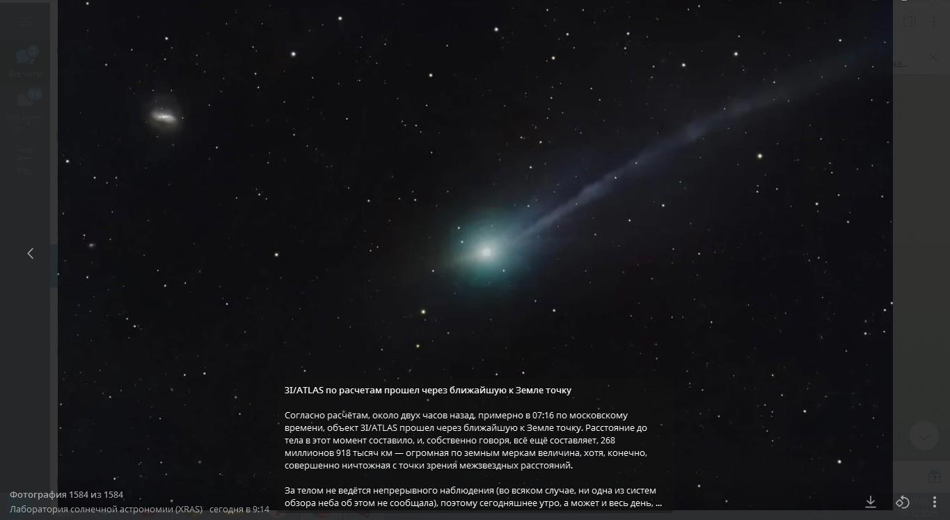 3I/ATLAS по расчетам прошел через ближайшую к Земле точку - https://t.me/lpixras/1925 , https://xras.ru/project_diary.html?post_id=3207