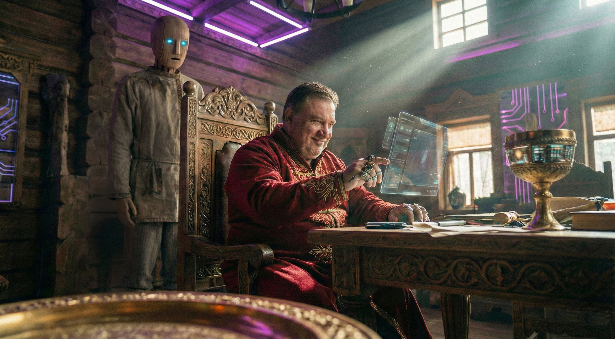 Тогда я написал сервис, в котором могу ввести все, что появится на будущей картинке: главный объект, окружение, действие. Там же сделал возможность выбрать камеру (цифровую, пленочную, ломо, ночную и пр), освещение (по рембрандту, студийное, натуральное), частицы (пыль, искры, капли и тд) и грейдинг (цветовую схему, как в кино. это когда у вас фильм про Иран будет желтовато-теплый, про аквамена - синеватый, про Хоумлендера - синевато-контрастный). И, конечно же, выбор объектива.