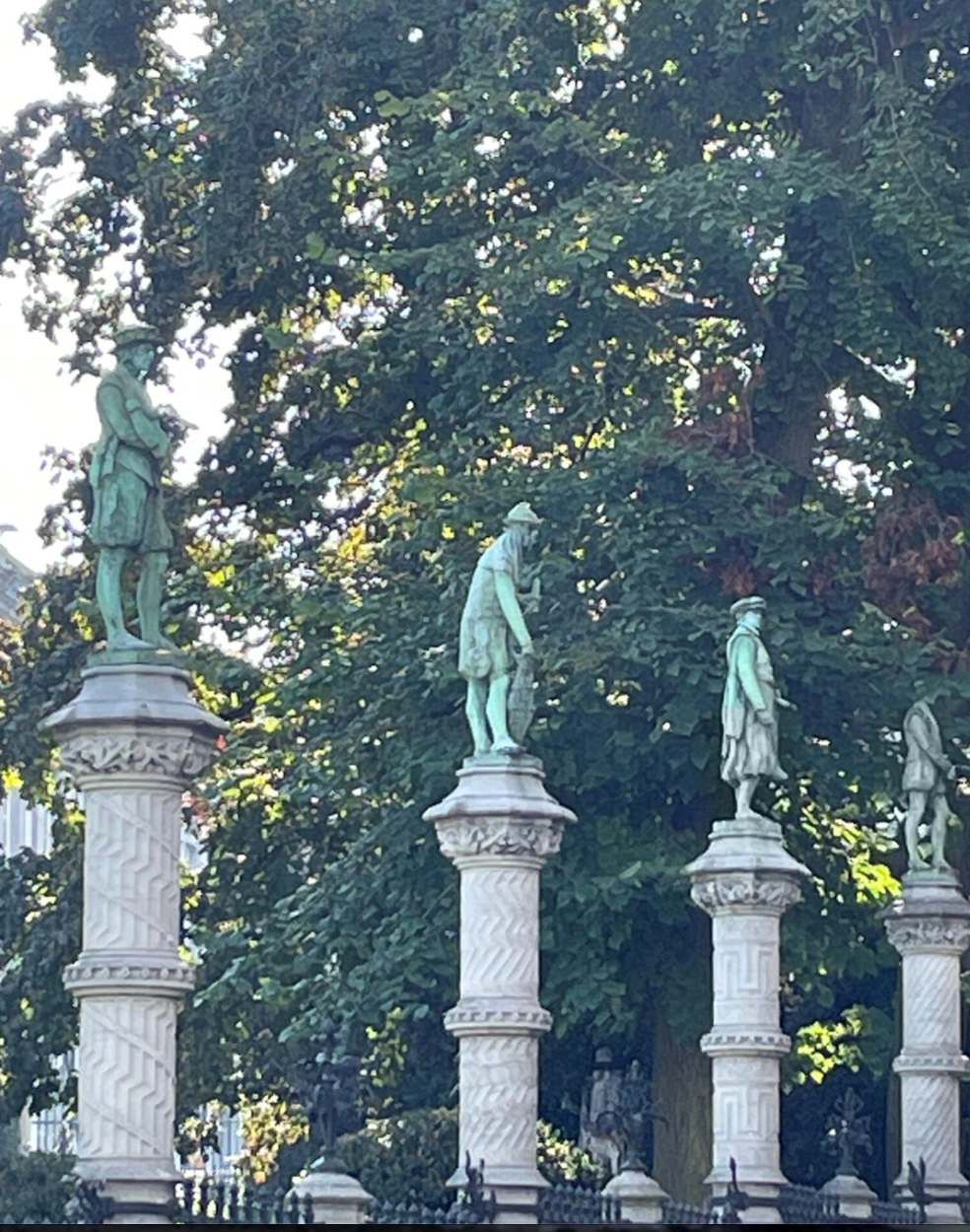 А решетка ограды украшена небольшими статуями ремесленников, символизирующими различные ремесла, они же цеха Брабанта, которые составляли гордость Брюсселя в 16 веке.