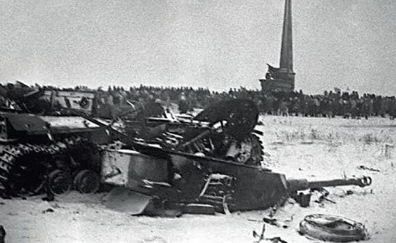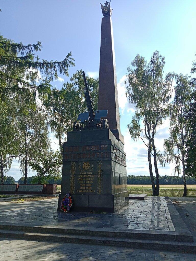 Причем стоит памятник прямо перед горелыми немецкими танками - а ближний вообще рядом от позиции и памятника - метров 100 - 150.