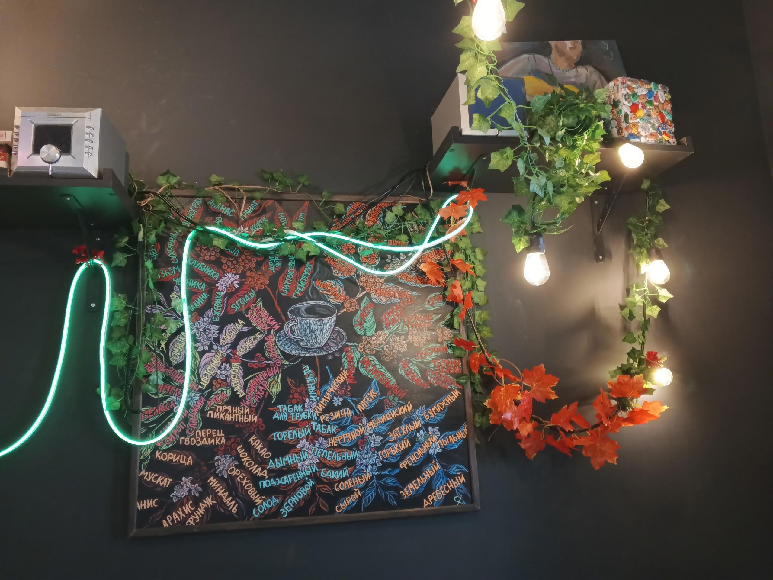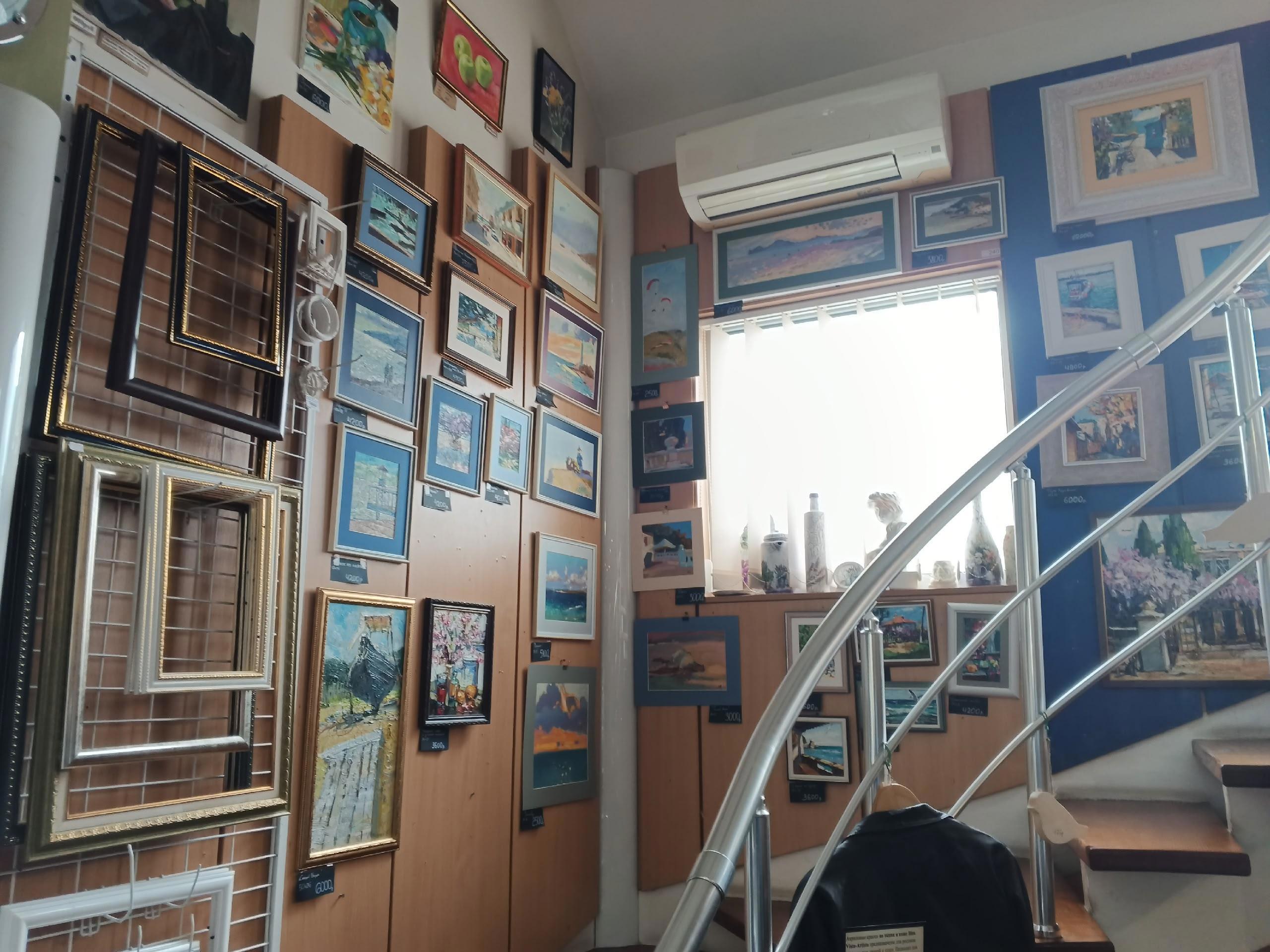 Когда мы вошли то просто обалдели. Крохотный, как нам казалось магазинчик оказался вполне себе не маленьким. Более того, в нём три этажа. Стены вдоль лестницы используются как маленький вернисаж.