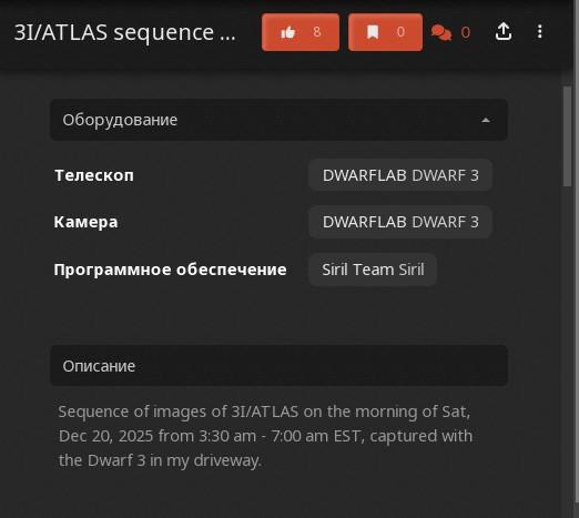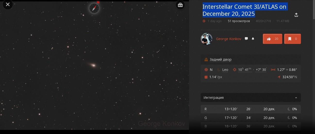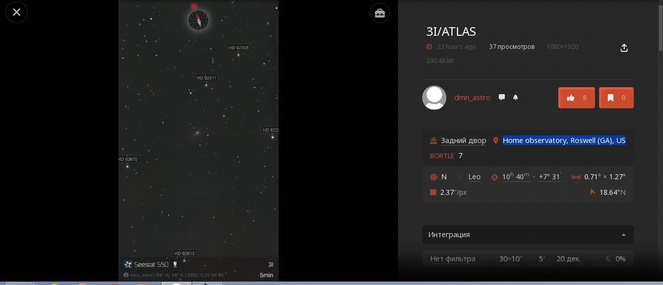 ВИДЕО: 3I/ATLAS sequence on Dec 20, 2025 - https://app.astrobin.com/i/7tfctj