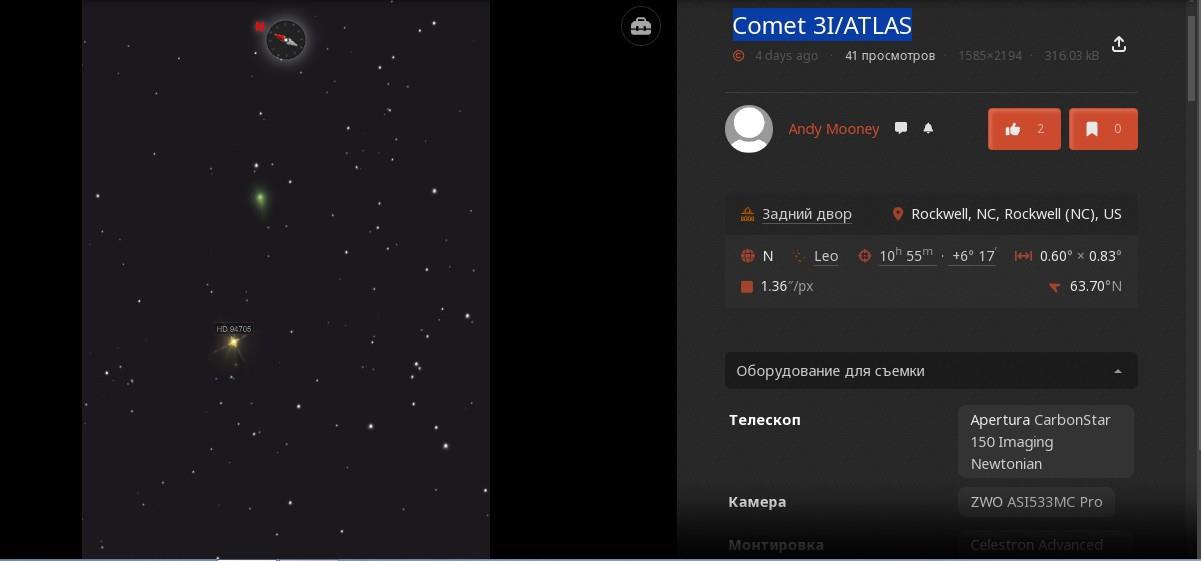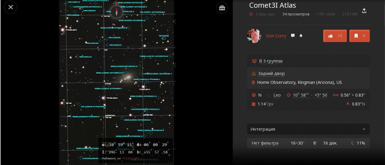Ну и НОВЫЕ ФОТО 3I/ATLAS с ПОРТАЛА Дом астрофотографии (AstroBin)