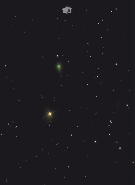 I wish I used a longer exposure to get the brighness up as the comet is barely visible - 8 seconds didn’t cut it this time - although you can barely make out the tail.