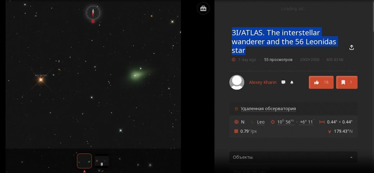 Этот наш БлогПост является своеобразным продолжением нашего же блога от 26 ноября в 19:19: Межзвездный объект «3I ATLAS» - не будет виден в бинокли и любительские телескопы - https://author.today/post/741434