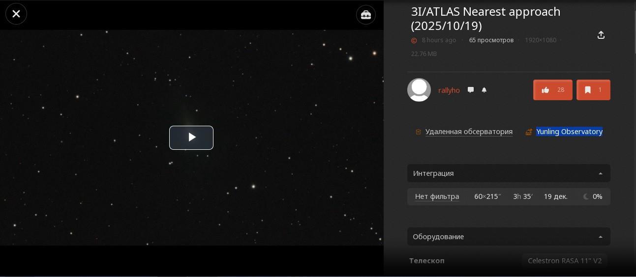 ВИДЕО: 3I/ATLAS Nearest approach (2025/10/19) - https://app.astrobin.com/i/azaqeh