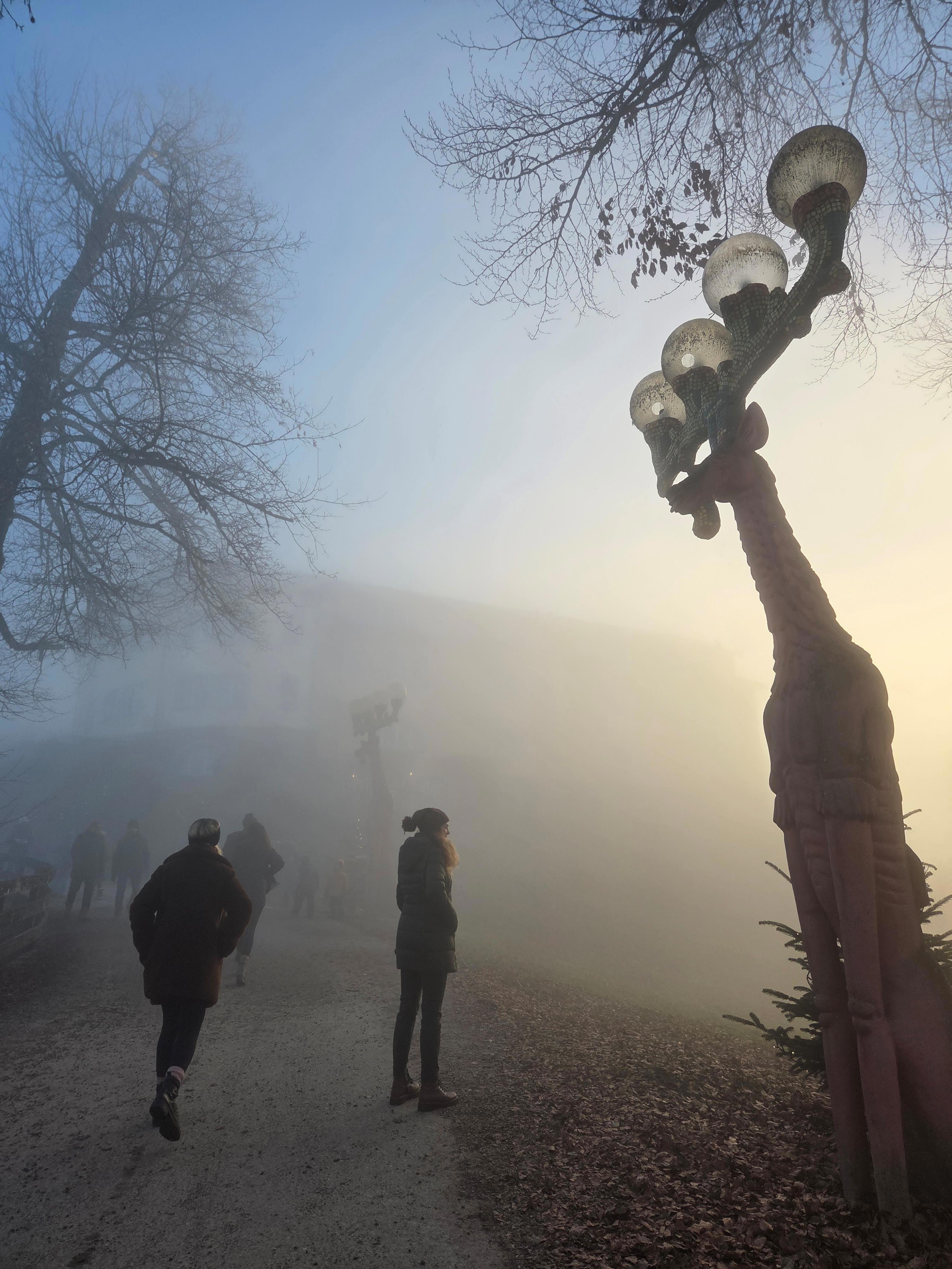 Толпа была разодета в пух и прах, увешана разноцветными лентами, пьяна и по-доброму криклива. Несмотря на кажущийся хаос, в основном люди стояли спиной к замку. Джей шёл сзади, положив руку мне на плечо, чтобы я не потерялась, и заодно направляя. Каким-то чудом он заметил местечко у самых перил, куда мы умудрились протолкнуться. Мы встали плечом к плечу, не в силах оторвать взгляда от открывшегося вида, который даже Наэ заставил затихнуть.