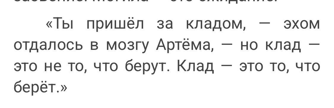 И вот настала та самая ночь, когда дух Артёма окреп и могильный камень расступился перед ним. Там он встретил духов предателей, вступил с ними в бой, и победил. Дальше следует не переводимая для понимания читателя игра слов автора.