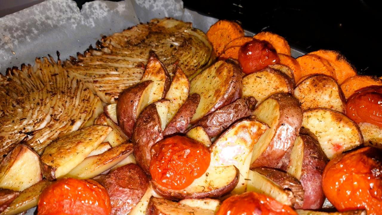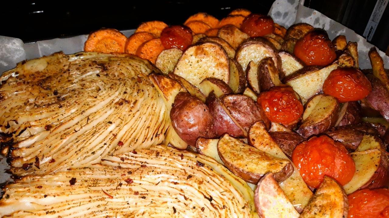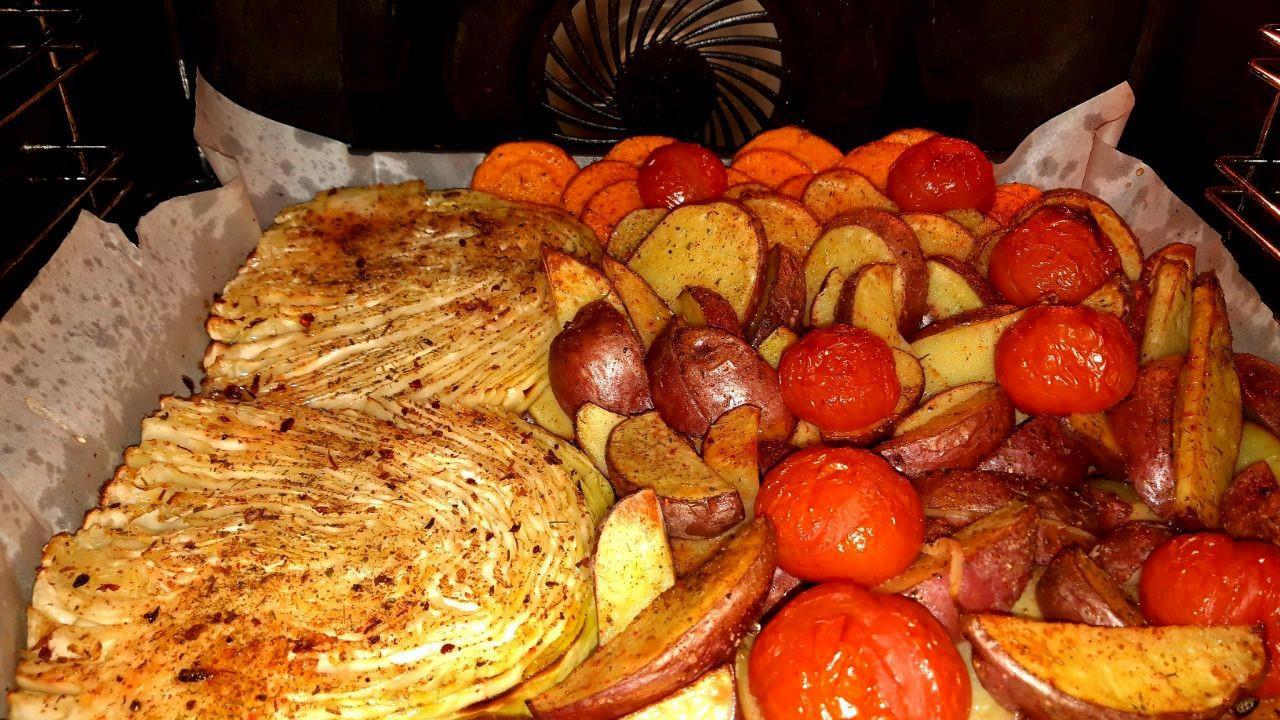 4) Овощи в духовке. Интересно было капусту попробовать запечь. Годный вариант и, что важно в мужской кулинарии, без заморочек: нарубил, смазал маслом, специями посыпал и в духовку.