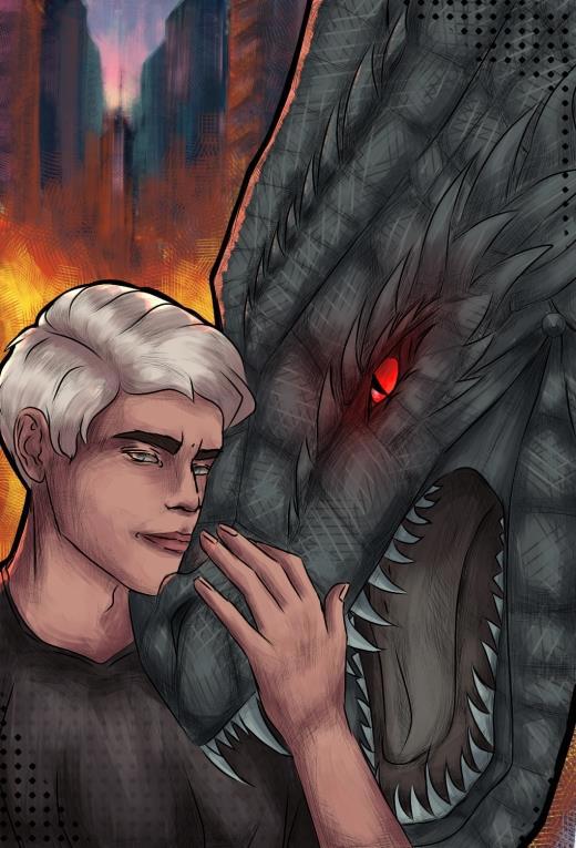 Отличная работа художницы Анастасии, на которой изображены Нокад главный герой будущего цикла "Конец эры" и его верный киберкон Дакон.