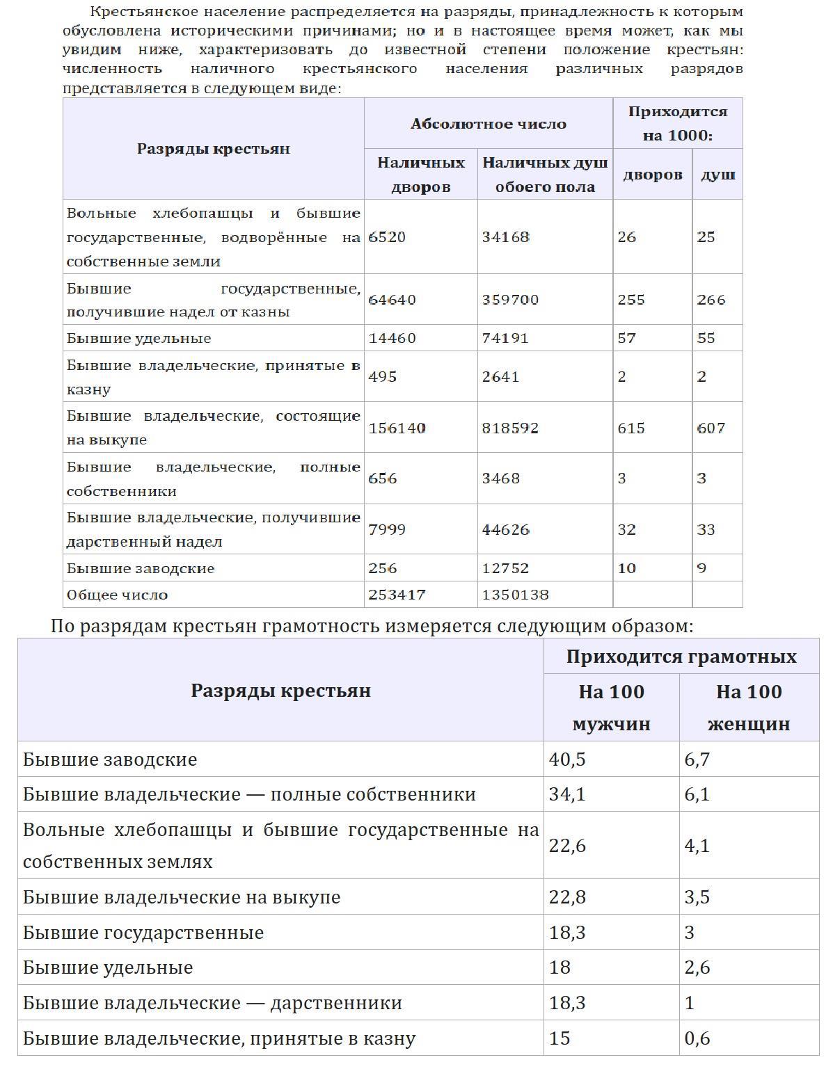Это в частности можно видеть по результатам статистического исследования крестьян нижегодской губернии, опубликованным в 1896 году