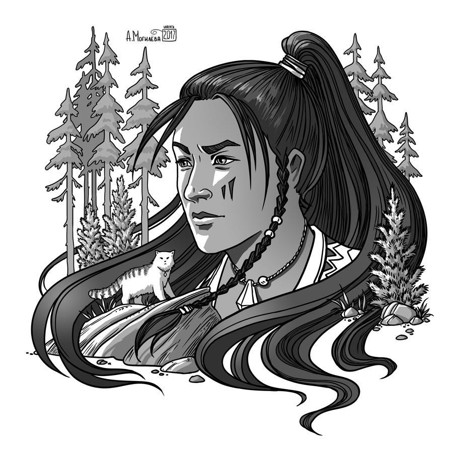 Началось всё в далёком 2016ом: я пошла на курсы портрета. Тогда книга про Юну только начиналась и в ней было всего три героя: Юна, мастер Свенсон и Антоний. Но для курсовой работы нужно было нарисовать как минимум четверых, причём в разных ракурсах, разных возрастов и разных национальностей. Вот так он и появился - хмурый то ли азиат, то ли индеец, нарисованный в три четверти