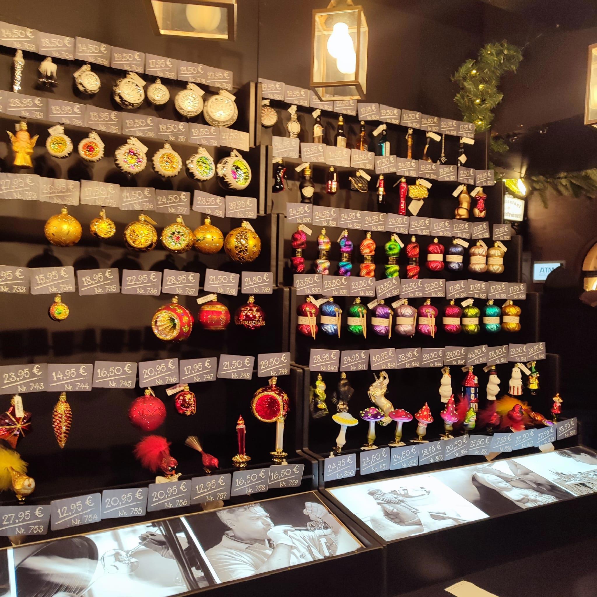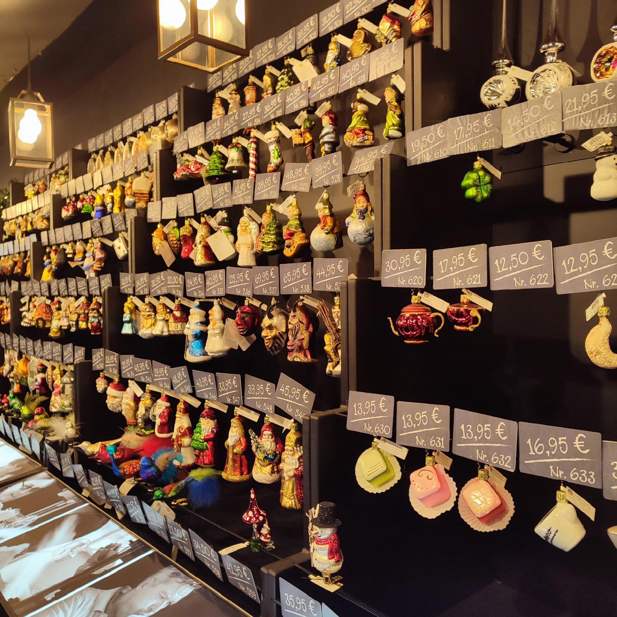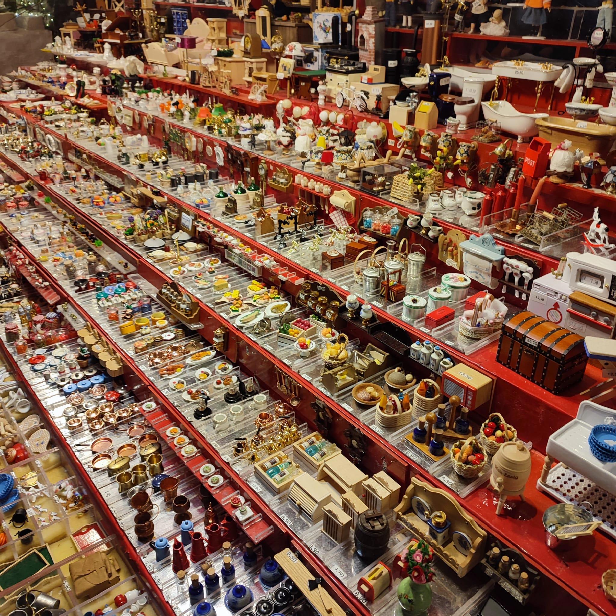Конечно же огромное количество новогодних игрушек и не только стеклянных. Тут и деревянные, и валеные из шерсти, и резные, и кружевные.... в общем, на любой вкус. Отдельные стенды с миниатюрой ( размер классический, 1 к 12), для тех кто любит собирать кукольные домики. Там есть все: от щеток, совков и чашек, до ковриков, тортов и настоящих светящихся настольных ламп и свечей.Все миниатюрное и не самое дешевое. Собирать такие коллекции достаточно накладно.