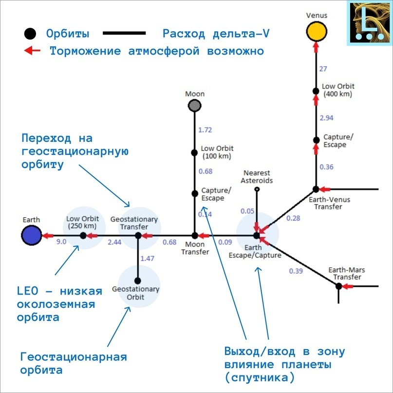 Окунемся в историю вопроса, подробно рассмотрим ключевое понятие дельта-V или как считается бюджет миссии. Расскажем как работать с картами дельта-V и покажем карту космического метро.