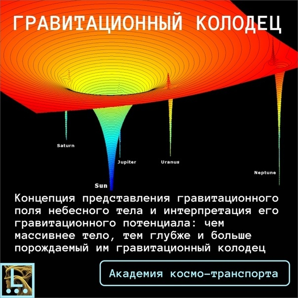 Чем массивнее тело, тем глубже и больше порождаемая им гравитационная воронка (или колодец). Так самый глубокая воронка образуется в гравитационном поле Солнца.